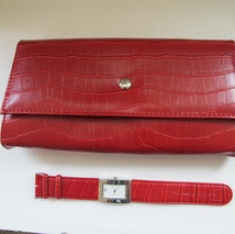 Veskemania. Rød krokopreget veske