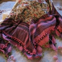Vintage hvitt og rosa sjal