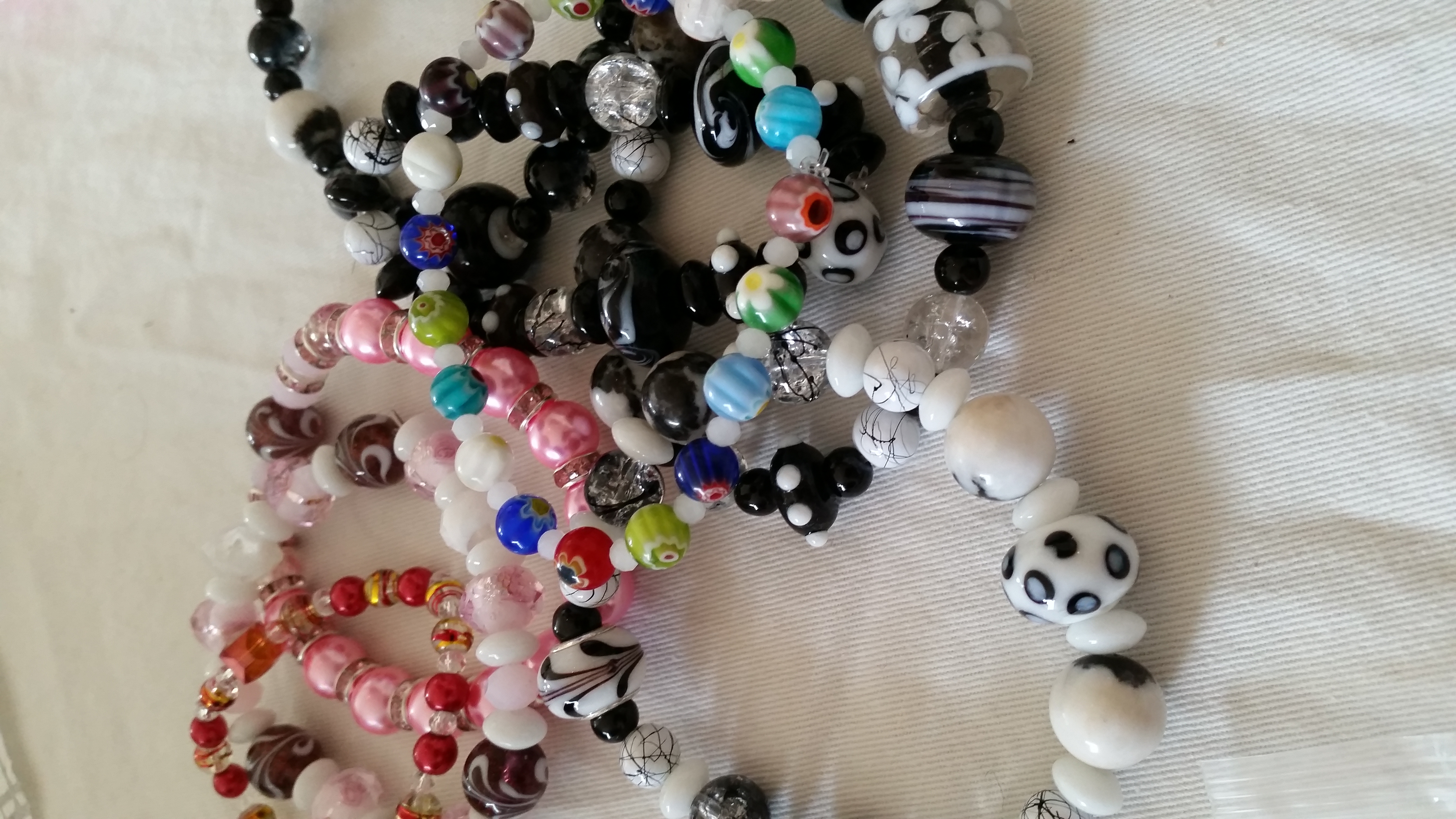 Armbånd/smykker blir laget på strikk så de er tøyelige.