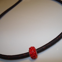 Rød smykker, Sort kjede, Svart kjede, Hals - kjede av sort og rød marmorert kork med en rød glitrende ring