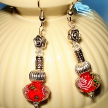 Ørepynt med swarovski krystaller, glasperler og antik sølv beads