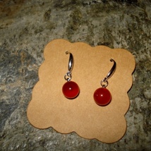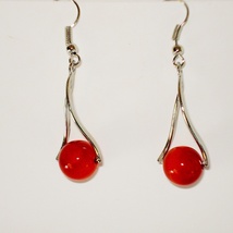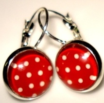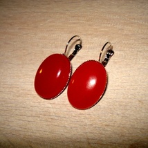Ørering rød kirsebær, Øredobber cabochon kirsebær, øredobber sølv rød