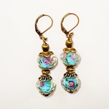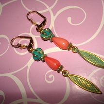 Øredobber kame gull-rosé barokk turkis, vintage stijl oorbellen, orecchini stile vintage