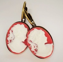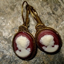 Øredobber kame bronse barokk vinrødt, vintage stijl oorbellen, orecchini stile vintage