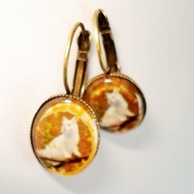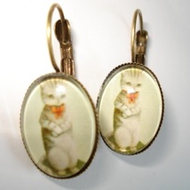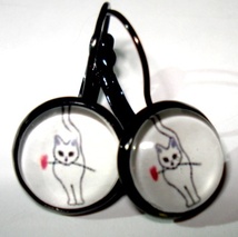 Øredobber katte pus par, Øredobber hvit, Øredobber sølv, ørering katte pus