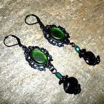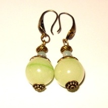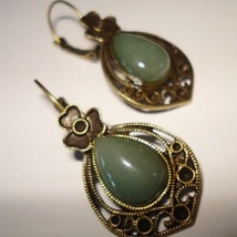 Øredobber grønn perle, vintage stil, filigrane øredobber