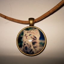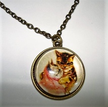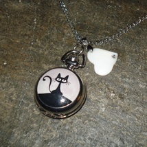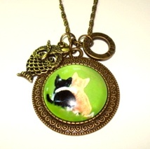 JANUARSALG Kjede med cabochon anheng pussekatt