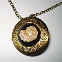 Medaljong bronse, medaljong med cabochon, smykker med medaljong