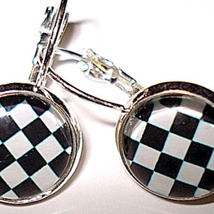 Øredobber svart hvit kvadratisk, sølv øredobber