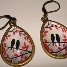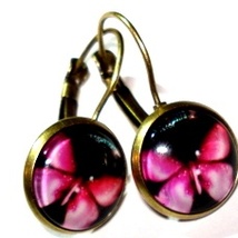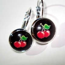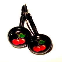 Rød smykke, Øredobber cabochon kirsebær, øredobber svart rød