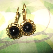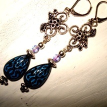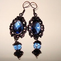 Øredobber blå og perle, øredobber svart, øredobber antikk