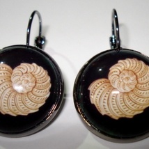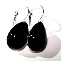 Ørering noteskrift, Øredobber cabochon noteskrift svart, øredobber sølv svart