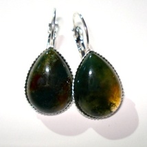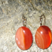 Øredobber agat stein i rød nyanser, øre smykker sølv