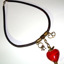 Rødt Smykke, Kjede med glass hjerte, hjerte kjede, kjede rødt, kjede svart