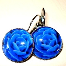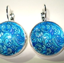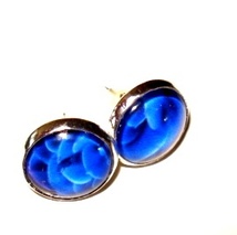 Blå øredobber med mørke blå cabochon, studs blå øredobber, øredobber og ørepynt