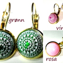 Mosaikk øredobber, gull øredobber, Øredobber mosaikk, mosaikk øredobber gull, farge øredobber vin rød, rosa og grønn