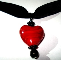 Rødt gotiske smykker, Kjede med glass hjerte, fløyel smykke, kjede rødt, kjede