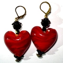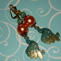Hjerte øredobber, Øredobber rødt, øredobber bronse og perler