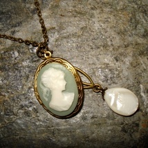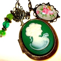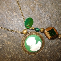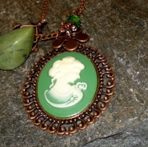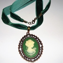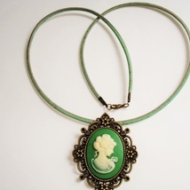 Grønn smykke barokk dame, Grønn kjede, Camé kjede, gotisk stil smykker, gothic style kjede