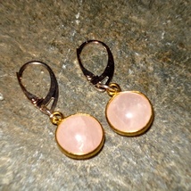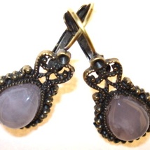 Bronse øredobber, Studs Bronze, Øredobber gotisk stil med rosa stein, Earrings bronze, quartz earrings