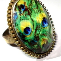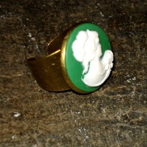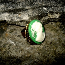 Nostalgisk bronse ring med grønn kame, nostalgisk ring smykke, ringer smykker