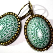 Ovale øredobber bronse mosaikk motiv, bronse øreringer, ørering mosaic, ørepynt bronse