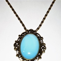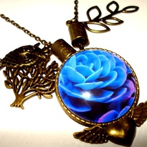 Bronse smykke halskjede med blå motiv, hals kjede bronse smykker