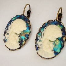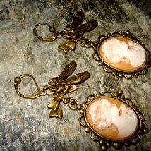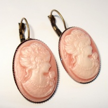 Barokk øredobber bronse-rose, vintage øredobber, camé rose øredobber