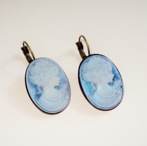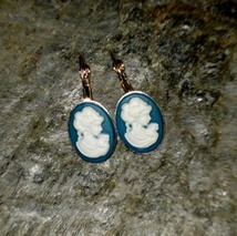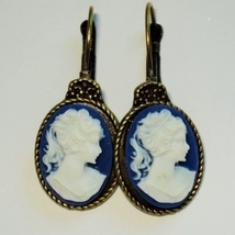 Barokk-øredobber blå-hvit, bronse øresmykker, vintage øredobber