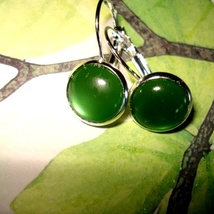 Øredobber med grønn natur stein, Studs Bronze, Nastat pronssi, Øredobber gotisk stil med natur stein
