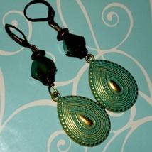 Grønn bronse øredobber, oorbellen, brons oorbellen, vintage stijl oorbellen, orecchini, orecchini in bronzo, orecchini stile vintage