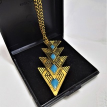 Vintage 70 tallet, anheng med faux turkis og langt kjede