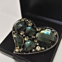 Stor hjertebrosje med sort strass, sort metall og sort glass