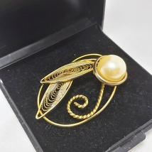 Vakker gullfarget brosje med faux perle 1950-1960 tallet