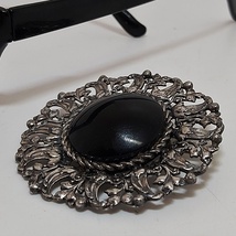 Vintage tinn brosje med sort agat
