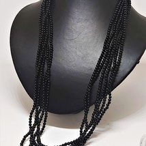 Langt festlig tre raders halskjede med sorte plastperler, charleston lengde