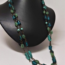 Gøyalt langt halskjede med glass perler, boho, hippie, festival, 1970-tallet