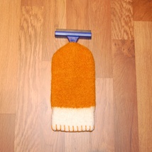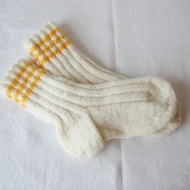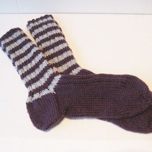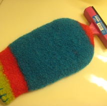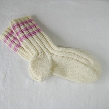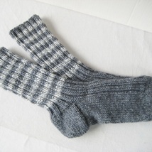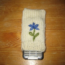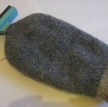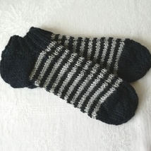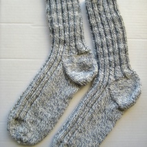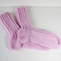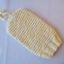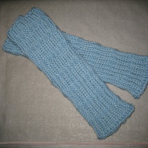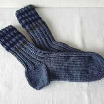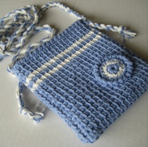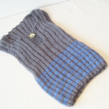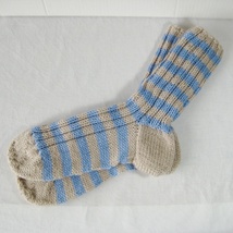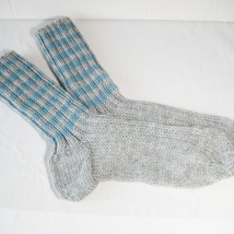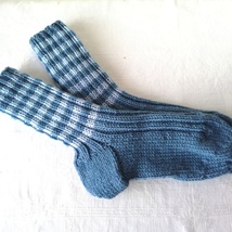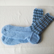 Nedsatt 30%: Pyntepuls av sjølvspunne garn - str S -M (lys blå)