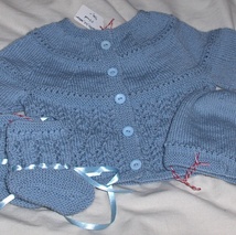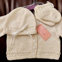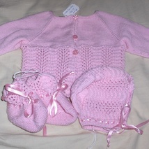 Nytt strikket sett: jakke, lue og sokker 0-3 mnd