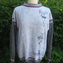 Genser m/helleristningsmotiver på str.M