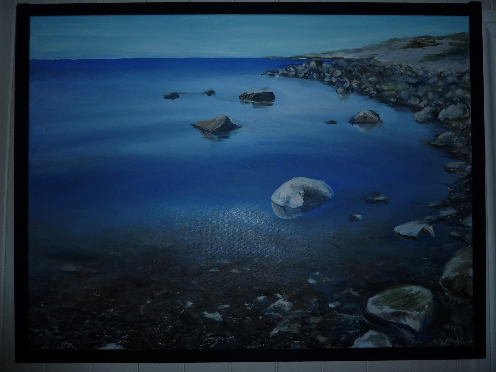 Jeg maler bilder inspirert av Hvalernatur og Hvalereventyr. Akryl og olje på lerret. Sorte enkle rammer.
