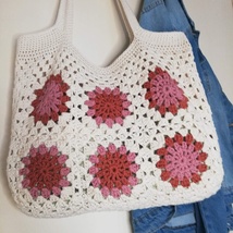 Vintage Tote bag - Håndlaget veske - Heklet bestemors torg