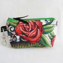 Roser og vin, liten pung med nøkkelring