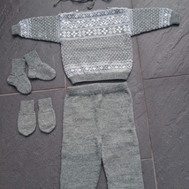 Ny pris, håndstrikket sett i Sætesdalsmønster, størrelse 1 år