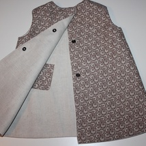 Vendbar kjole / Offwhite og brunrosa roser / ca 6 mnd
