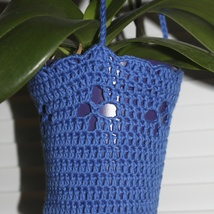 Flyndras strikketråd - "Blomstrende hengepotte i kongeblå"