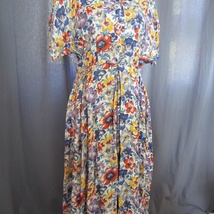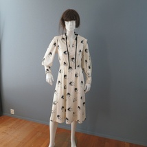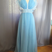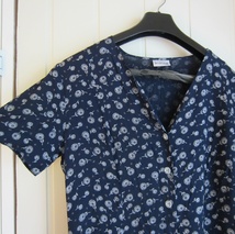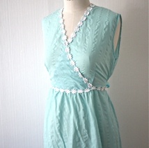 Vintage lys turkis bomullskjole med hvite blomster str 44(42)