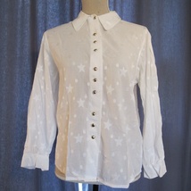 Vintage skjorte/bluse med vevd stjernemønster, str 38