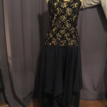 Vintage kjole med gull- og paljettbrodert liv og asymmetrisk skjørt