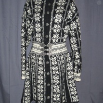 Strikkekjole setesdalsmønster, svart/hvit, stor størrelse!